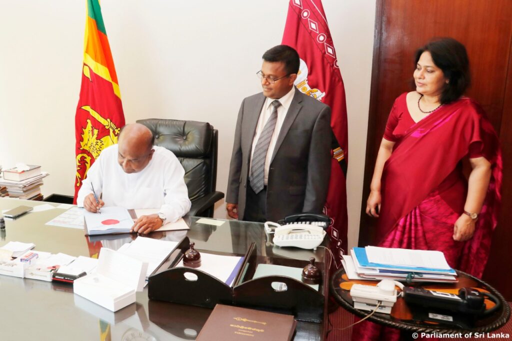 \பாராளுமன்றத்தின் விசேட பெரும்பான்மையுடன் அண்மையில் (21) நிறைவேற்றப்பட்ட அரசியலமைப்புக்கான 22ஆம் திருத்தச் சட்டமூலத்தில் சபாநாயகர் மஹிந்த யாபா அபேவர்தன இன்று (31) தனது கையொப்பத்தையிட்டு சான்றுரைப்படுத்தினார்.
