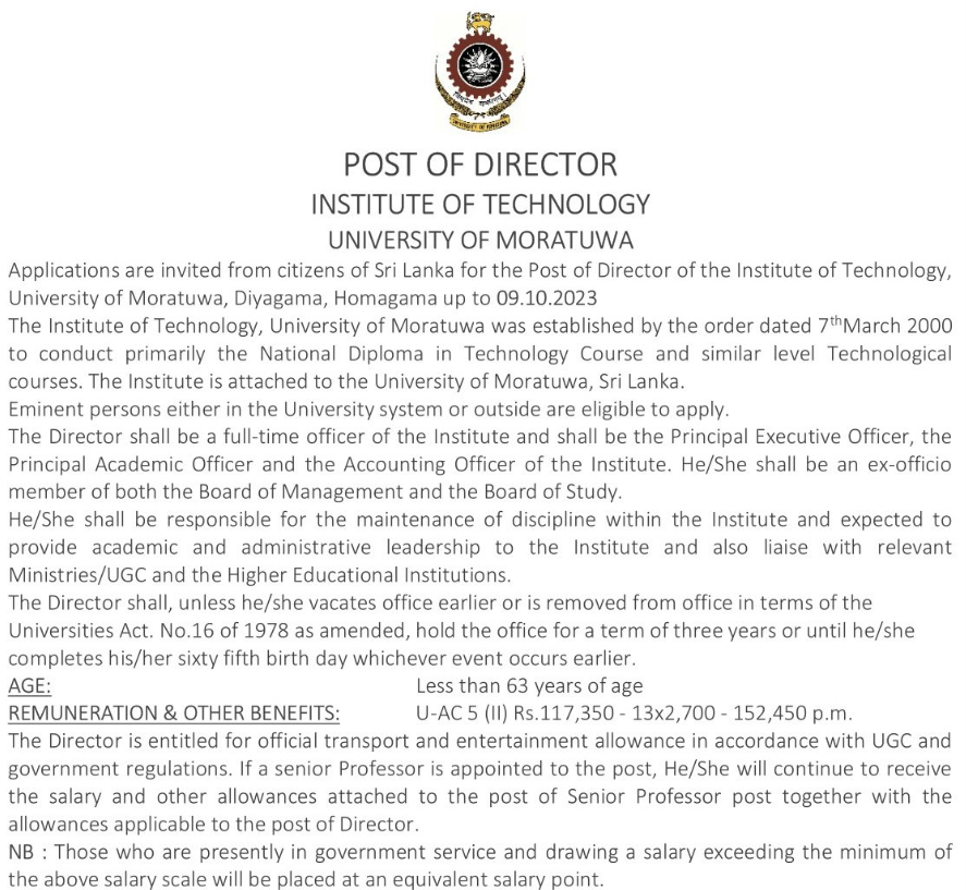 மொரட்டுவ பல்கலைக்கழகத்தில் தொழில் வெற்றிடம்