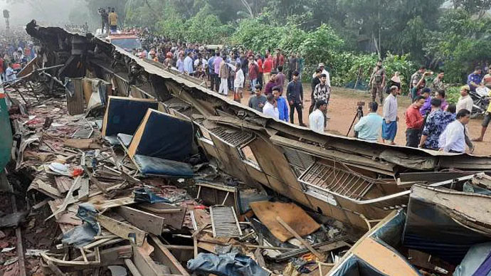 நேற்று (23) பிற்பகல் பங்களாதேஷ் டாக்கா மாகாணத்தின் கிஷோர்கஞ்ச் மாவட்டத்தில் இருந்து டாக்கா நோக்கி சென்று கொண்டிருந்த இகரொசிந்தூர் எக்ஸ்பிரஸ் ரயிலும், சட்டோகிராம் நோக்கி பொருட்கள் ஏற்றி வந்த மற்றொரு ரயிலுமே இவ்வாறு விபத்துக்குள்ளாகின.