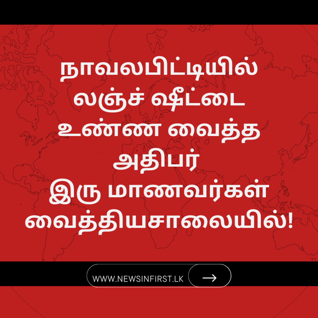 நாவலப்பிட்டி வலயக் கல்வி அலுவலகத்தின் கீழ் இயங்கும் கல்லூரி ஒன்றில் மதிய உணவை லஞ்ச் ஷீட்டில் சுற்றிக்கொண்டு வந்த 7 மாணவர்களை பிடித்த பாடசாலையின் அதிபரொருவர், அந்த லஞ்ச் ஷீட்டை உட்கொள்ளுமாறு கூறியமையால், அதனை உண்ட இரண்டு மாணவர்கள் பாதிக்கப்பட்டுள்ளனர்.