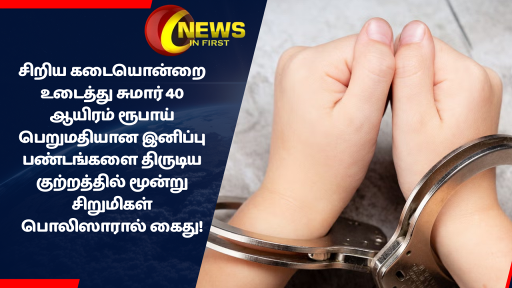 களுத்துறை வர்ணத் பெர்னாண்டோ விளையாட்டரங்கில் உள்ள சிற்றுண்டிச்சாலையை உடைத்து, அங்கிருந்த சுமார் 40 ஆயிரம் ரூபாய் பெறுமதியான இனிப்பு பண்டங்களை திருடியதாக கூறப்படும் சிறுமிகள் மூவரை களுத்துறை தெற்கு தலைமையக பொலிஸார் கைது செய்துள்ளனர்.