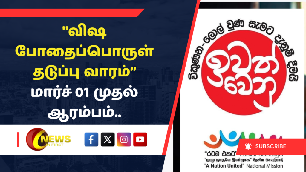 “முழு நாடும் தேசிய செயற்பாட்டு” திட்டத்துடன் இணைந்து செயல்படுத்தப்படும் “விஷ போதைப்பொருள் தடுப்பு வாரம்”, மார்ச் 01 ஞாயிற்றுக்கிழமை முதல் ஆரம்பமாகவுள்ளது.