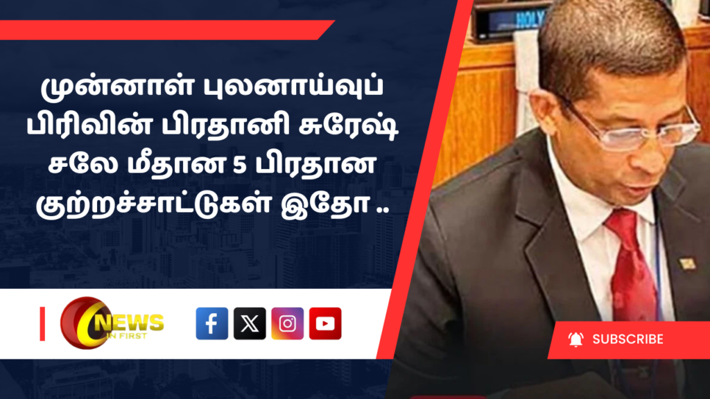 கடந்த 25 ஆம் திகதி குற்றப் புலனாய்வுத் திணைக்களத்தால் (CID) கைது செய்யப்பட்ட முன்னாள் புலனாய்வுப் பிரிவின் பிரதானி, ஓய்வுபெற்ற மேஜர் ஜெனரல் சுரேஷ் சலேக்கு எதிராக முன்வைக்கப்பட்டுள்ள ஐந்து பிரதான குற்றச்சாட்டுகள் குறித்த தகவல்கள் வெளியாகியுள்ளன. உயிர்த்த ஞாயிறு தற்கொலை குண்டுத் தாக்குதல் தொடர்பான சதித்திட்டம் மற்றும் சாட்சியங்களை மறைக்கும் செயன்முறையில் அவர் தொடர்புபட்டிருப்பதாக பொலிஸார் சந்தேகிக்கின்றனர்.