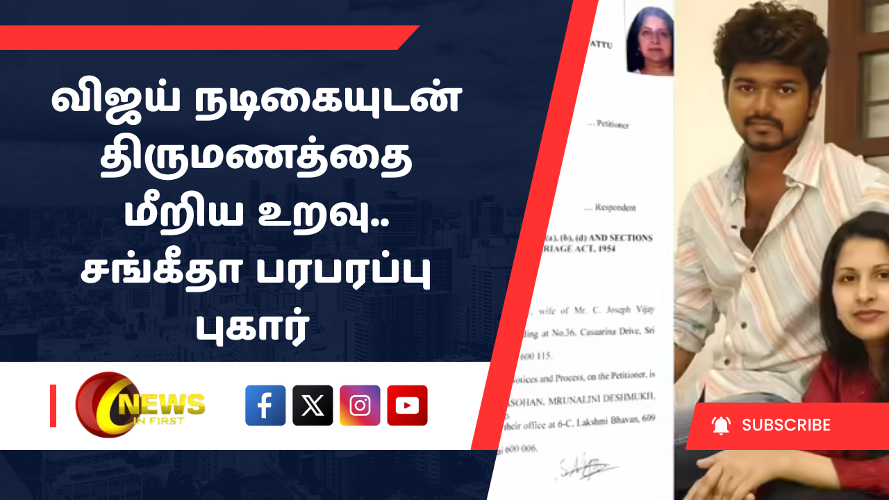 தமிழ் சினிமாவில் உச்ச நட்சத்திரமாக இருந்தவர் நடிகர் விஜய் இவர் கடந்த 2024 ஆம் ஆண்டு சட்டமன்ற தேர்தலை இலக்காகக் கொண்டு தமிழக வெற்றி கழகம் என்ற பெயரில் கட்சியை தொடங்கினார். இவரது அரசியல் வருகை மக்கள் மத்தியில் மிகுந்த எதிர்பார்ப்பை ஏற்படுத்தியது.இந்த சூழலில் விஜயின் மனைவி சங்கீதா செங்கல்பட்டு நீதிமன்றத்தில் விவாகரத்து கோரி மனு தாக்கல் செய்திருப்பது பரபரப்பு ஏற்படுத்தியுள்ளது.