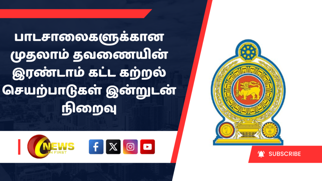 அரச மற்றும் அரச அங்கீகாரம் பெற்ற தனியார் பாடசாலைகளுக்கான முதலாம் தவணையின் இரண்டாம் கட்ட கற்றல் செயற்பாடுகள் இன்றுடன் (10) நிறைவடைகின்றன.