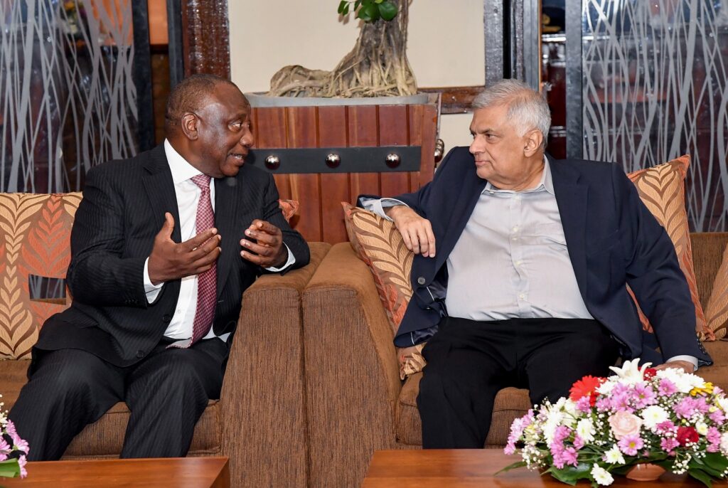 தென்னாபிரிக்க ஜனாதிபதி சிறில் ரமபோஷா நேற்று (16) இலங்கைக்கு விஜயம் செய்து ஜனாதிபதி ரணில் விக்ரமசிங்க அவர்களை சந்தித்து இருதரப்பு விடயங்கள் குறித்து உரையாடினார்.