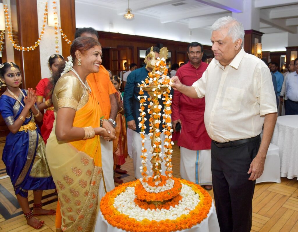 இந்துக்களின் தீபாவளிப் பண்டிகையை முன்னிட்டு ஜனாதிபதி அலுவலகத்தில் இன்று மாலை (24) ஜனாதிபதி ரணில் விக்ரமசிங்க மற்றும் பிரதமர் தினேஷ் குணவர்தன ஆகியோர் தலைமையில் விசேட தீபாவளி நிகழ்வொன்று இடம்பெற்றது.ஜனாதிபதி செயலகம் ஏற்பாடு செய்திருந்த இந்த நிகழ்வில் இந்து மத சம்பிரதாயங்களுக்கு முன்னுரிமை வழங்கப்பட்டிருந்ததுடன் நிகழ்வு மிகவும் எளிமையாக நடைபெற்றது.